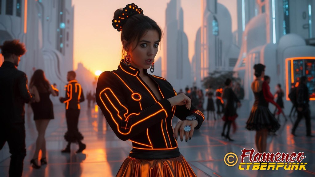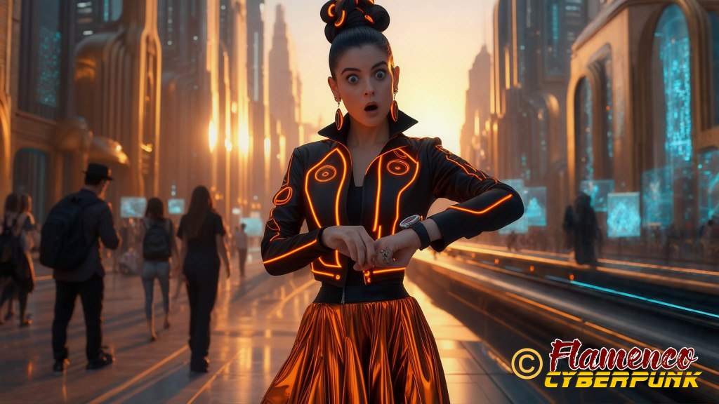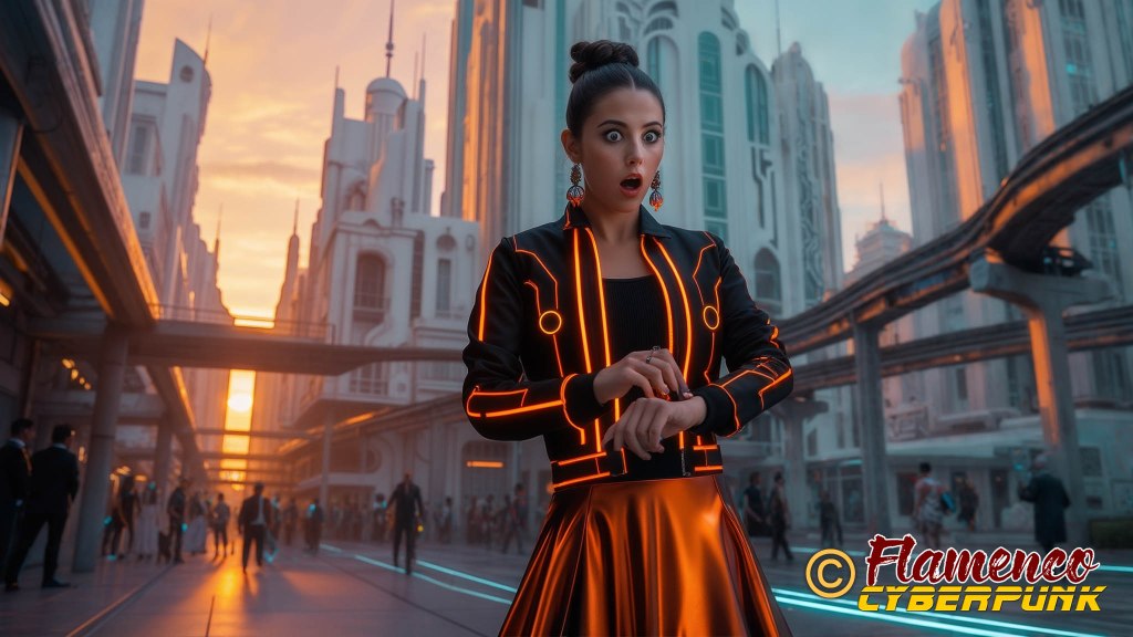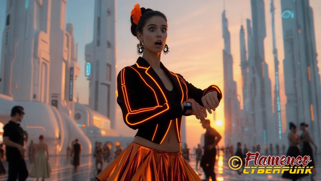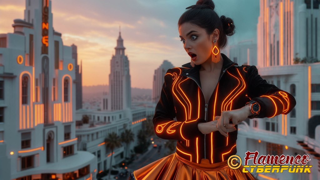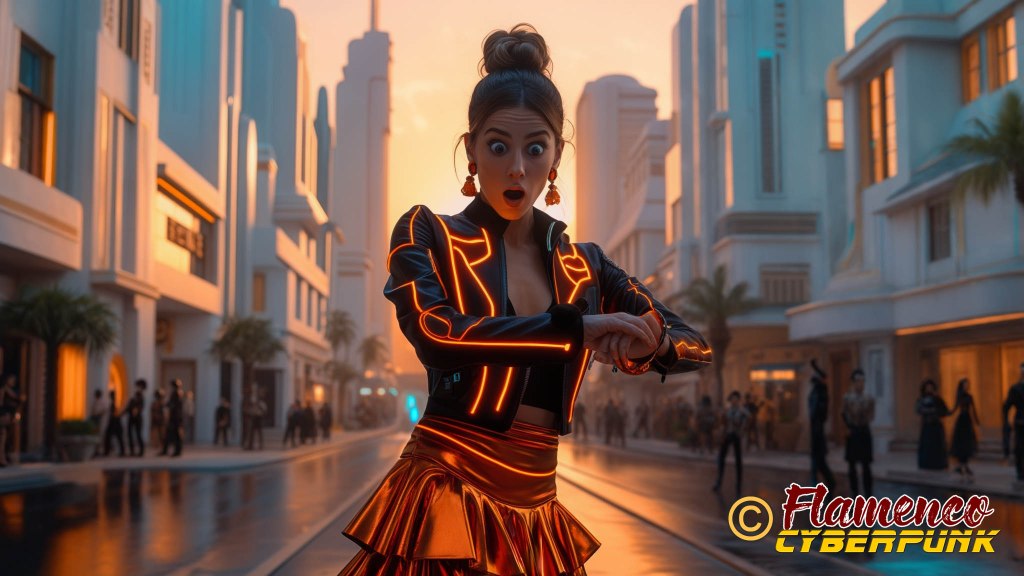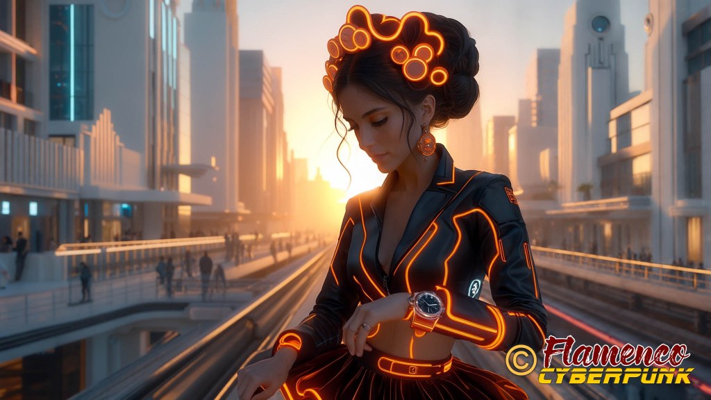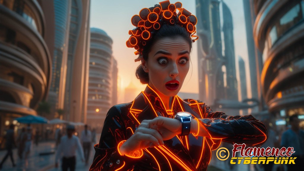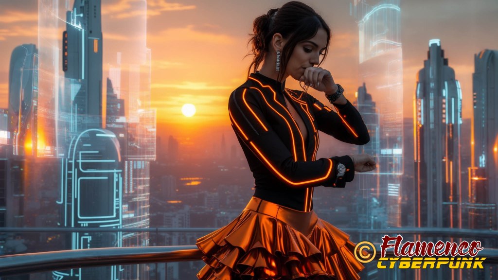 En el plano 30, la protagonista constata que se hace tarde mirando su reloj. La elección de la hora del día en el momento de la puesta de sol sirve como punto de inflexión para denotar que pasa un largo rato desde el plano anterior, a plena luz del día, y el posterior, en el que será ya de noche. Los colores cálidos en ella y en el cielo se oponen a las frías luces azules de la ciudad.